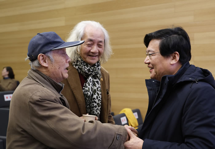 曹春生在致辭中表示,非常有幸能作為新中國美術教育附中的第一批學生,我們常常被戲稱是“黃埔一期”,這一稱呼令我們倍感自豪。上附中以前,我只是喜歡畫畫,但是不知道怎么學畫畫,畫畫到底怎么回事,心里并不是很清楚;來到附中以后,不僅學習美術知識,學習文化理論,還樹立了良好的藝術觀。感謝附中的老師們、先生們,他們把全身心撲向了美院附中的教學,對我們像對待自己的孩子一樣來關照。70年來的光陰歷歷在目,在附中學習的日子、在美院學習的日子都是我人生中最美好的回憶。